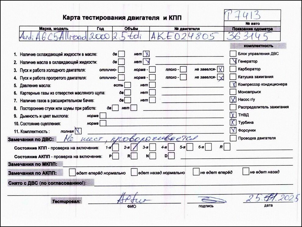 Авторазборка ПитСтоп предлагает Вам Купить двигатель Audi A6 (C5) Allroad 2.5 L на самых NewSinonimMass4 условиях и с полным пакетом документов, включающих в себя: договор купли—продажи номерного агрегата, грузовая таможенная декларация, гарантийный талон и акт NewSinonimMass1.